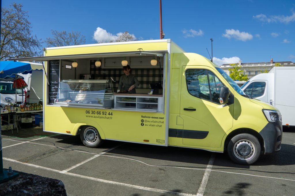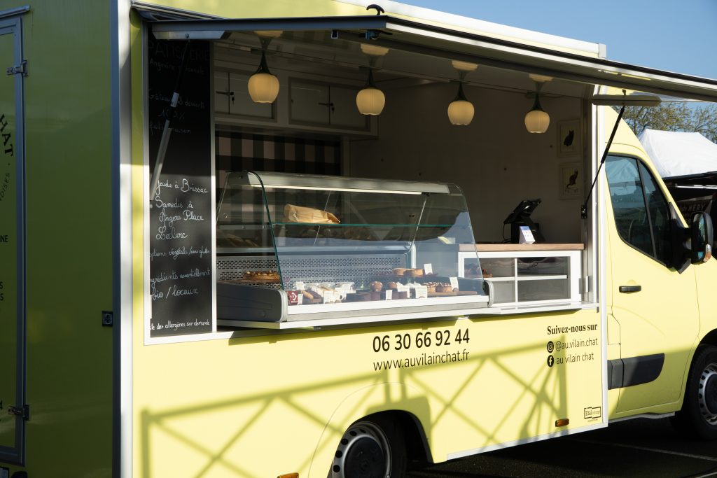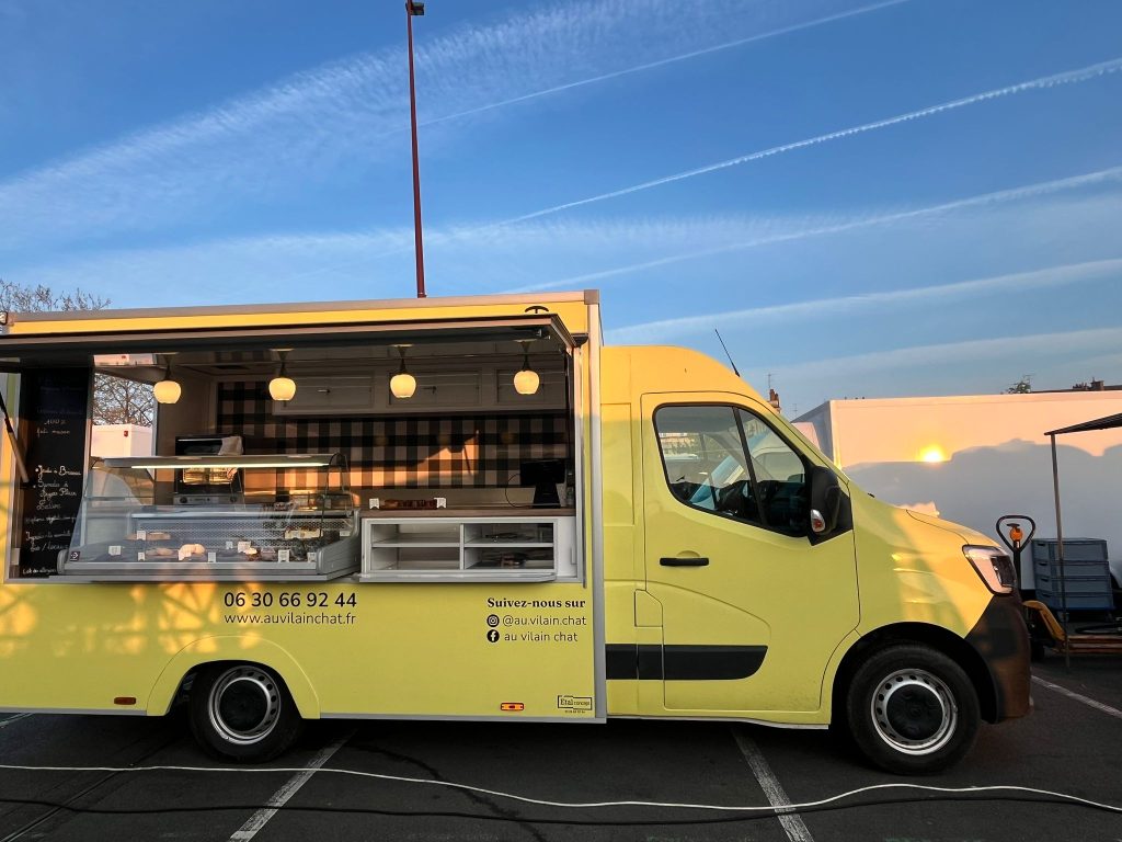 - Au Vilain Chat est une pâtisserie ambulante avant tout, mais cela ne nous empêche pas d’envisager du salé ! Margaux a été formée en pâtisserie et en cuisine, ce qui lui permet de travailler un éventail de recettes variées.